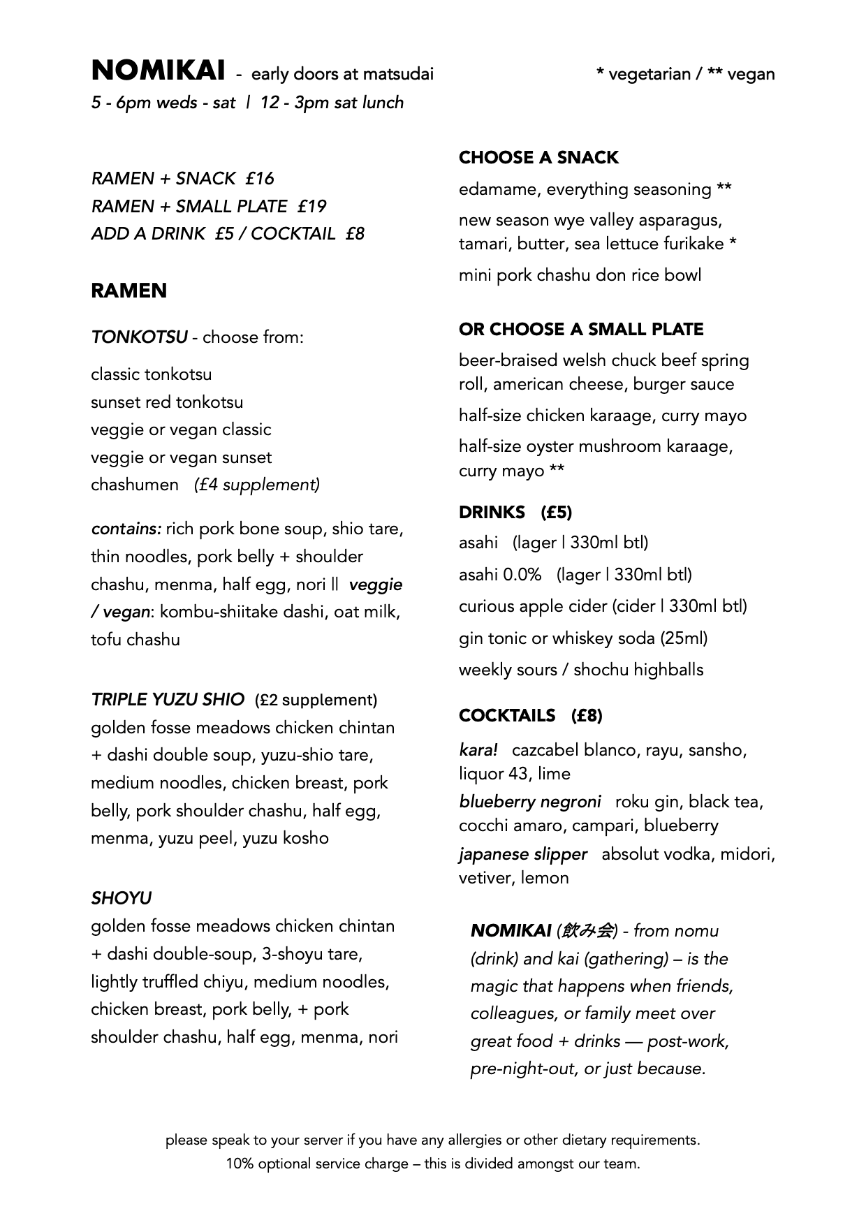 our early doors menu for low-stakes catch-ups, post-work bowls, pre-night-out drinks, or just because.